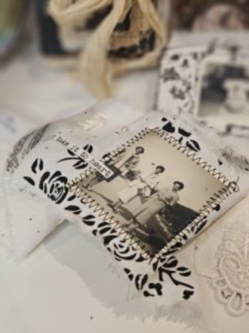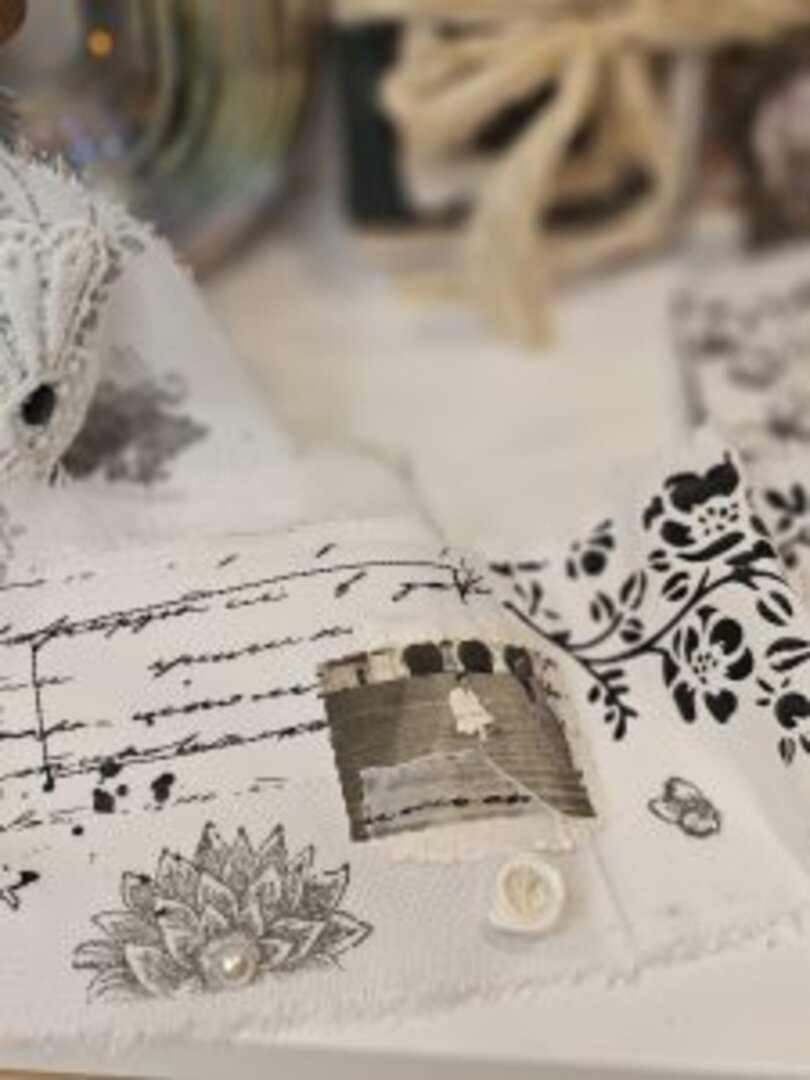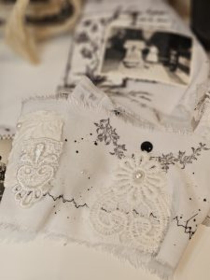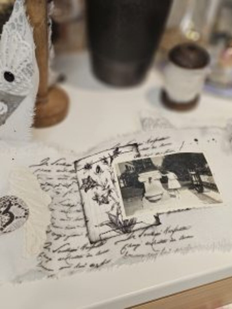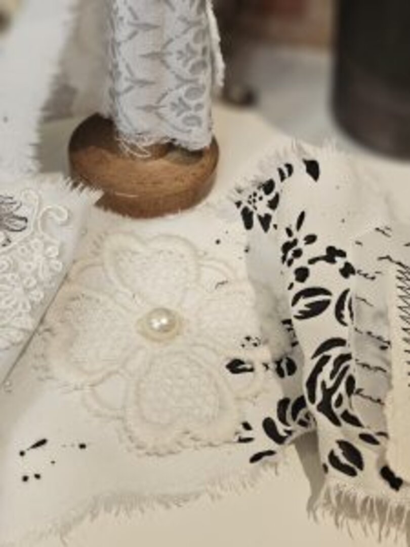Infinidad de detalles, perlas, texturas, puntillas y fotos en blanco y negro originales… una delicia para cualquier rincón!!!