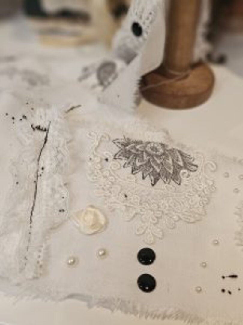 Este fin de semana, he tenido un rato para poder crear esta preciosa bobina y es que tenía muchas ganas de hacer algo en blanco y negro. Sobre una bobina antigua de madera y una tela blanca inmaculada, ellas cuentan su historia, su vida …..