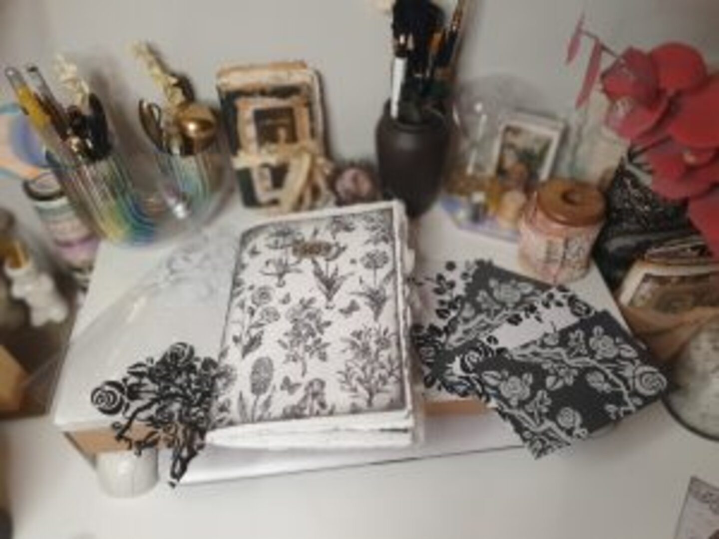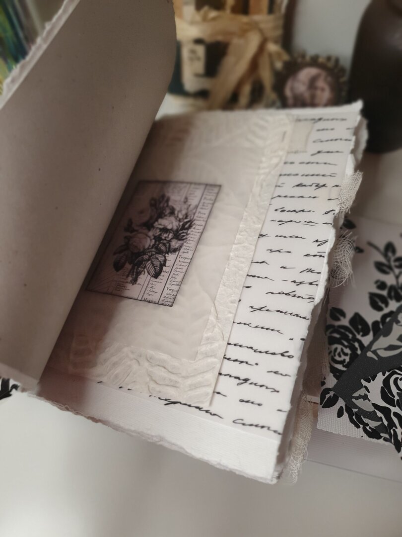 En este caso, he querido crearlo en blanco y negro, elegante y sencillo. Con papel de algodón, de cristal, acetato, velum, partitura, cartulina texturizada perlada… súper delicado!