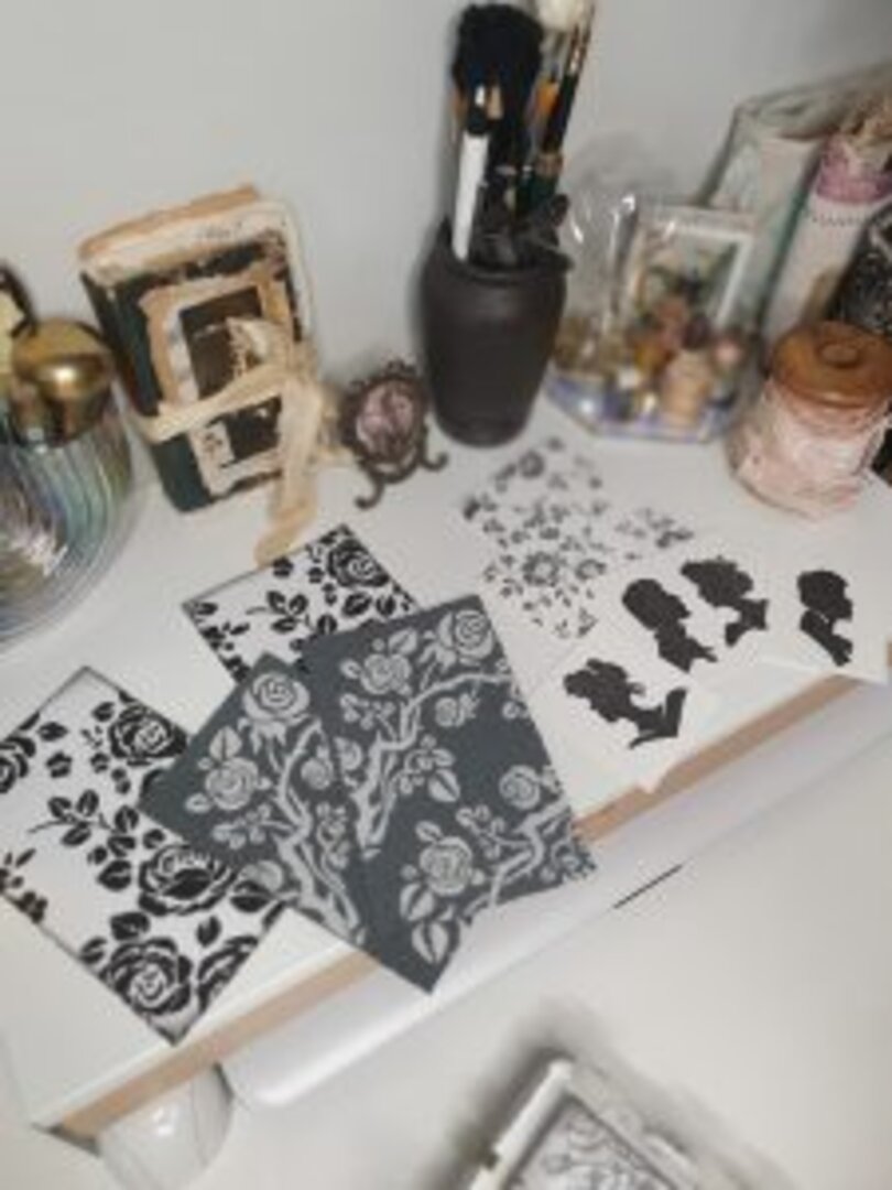 Lo he querido acompañar de tarjetas con textura y sellos estampados, para poder hacer creaciones preciosas.