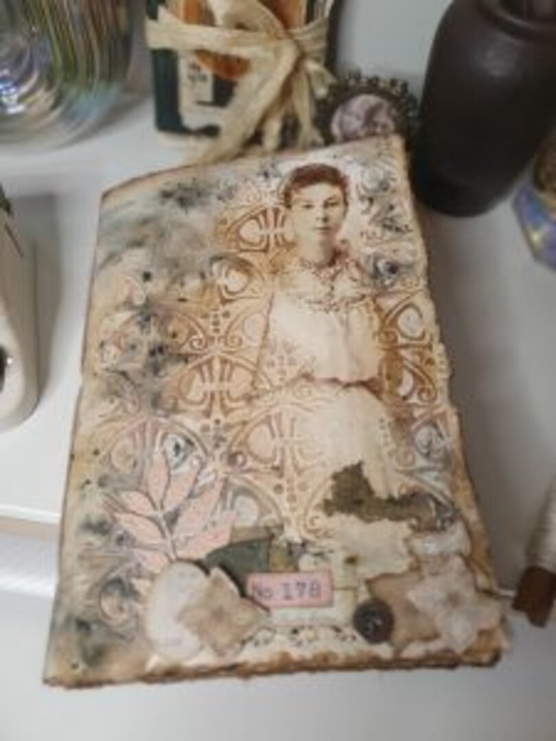 Las portadas las hice con técnicas mix media, use pasta de textura, papel de arroz, pigmentos, troquelados, etiquetas….