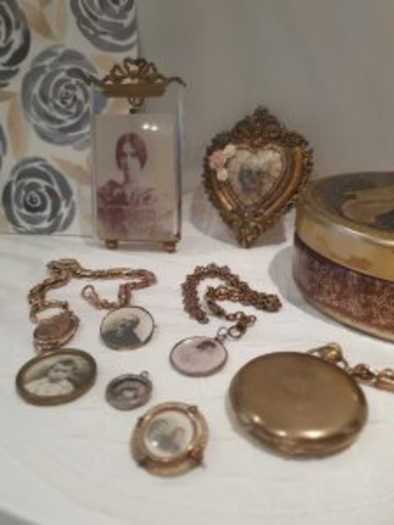 Aquí os dejo algunas joyitas, relicarios antiguos, leontinas, relojes de bolsillo, recordatorios …