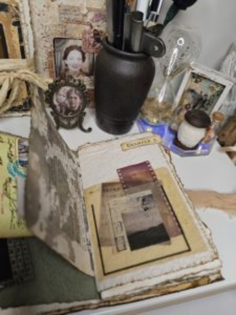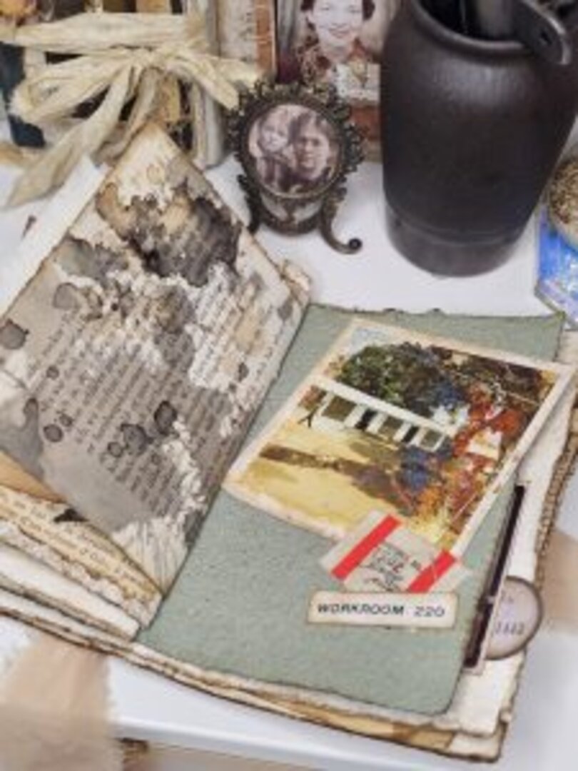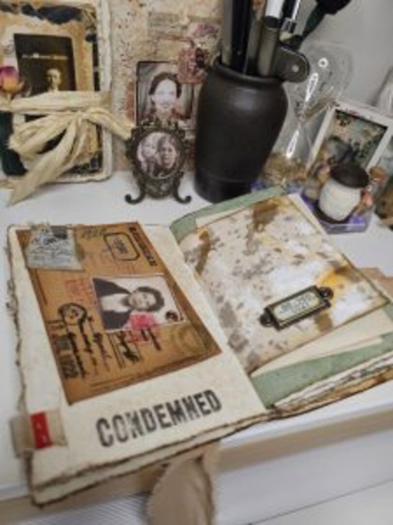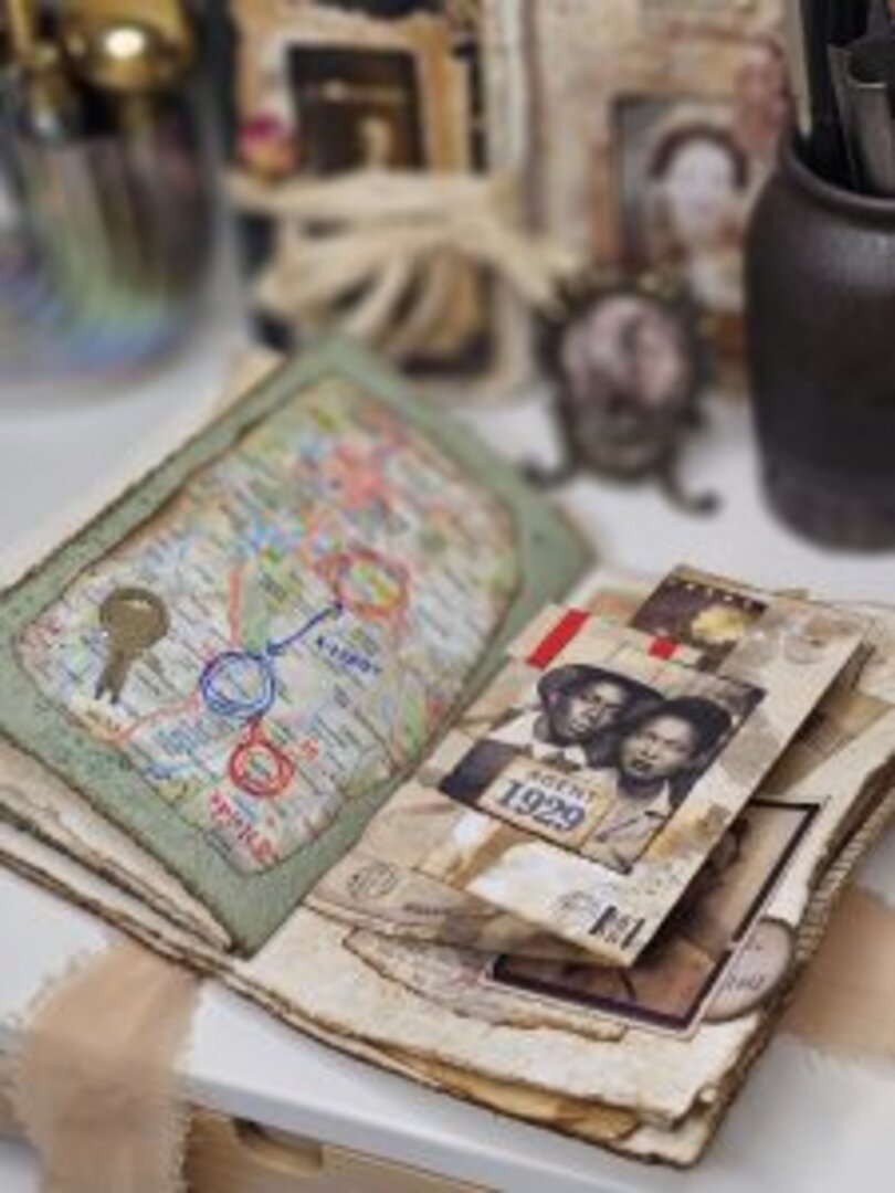 Este junk ha sido el 1º que hice con estética masculina. Tonos verdes, beige, marrones, fotos, mapas, llaves, metal, etiquetas, tickets, cartas….. y un sin fin de detalles, que hacen de este proyecto toda misión…