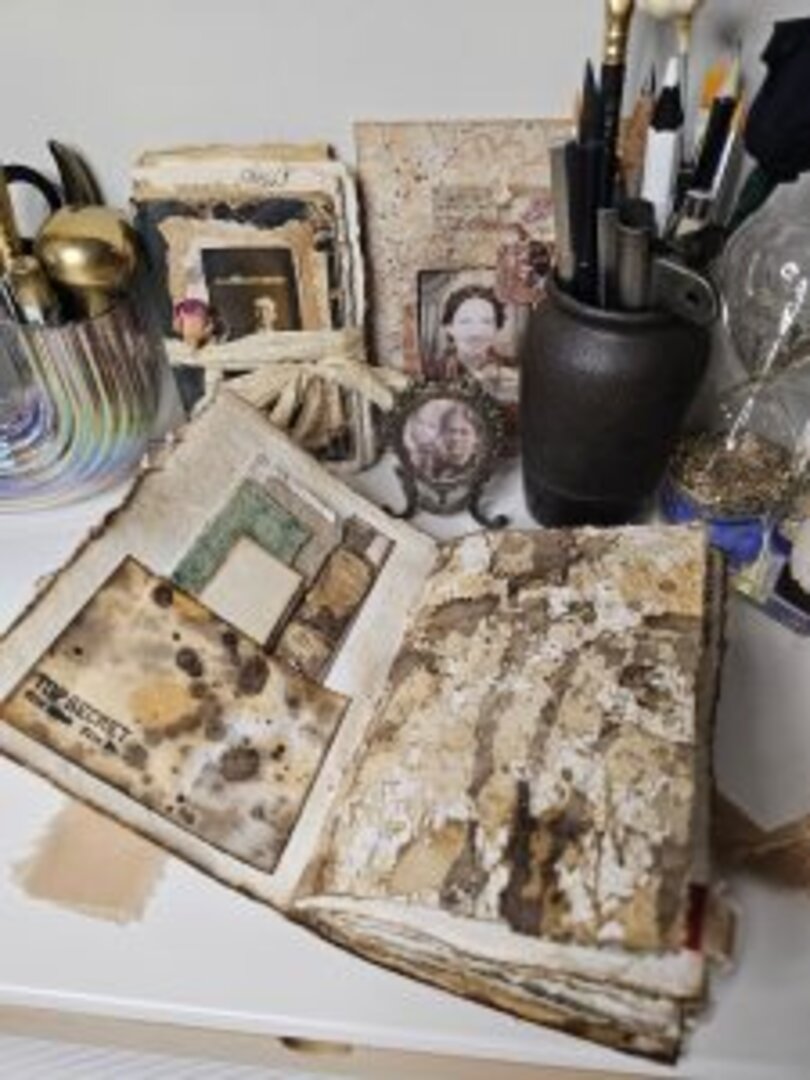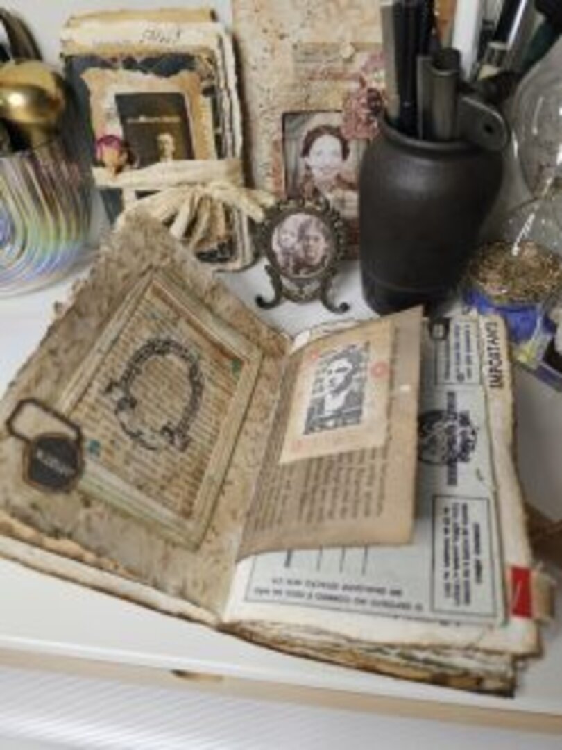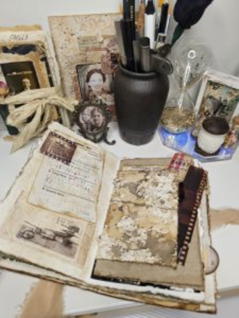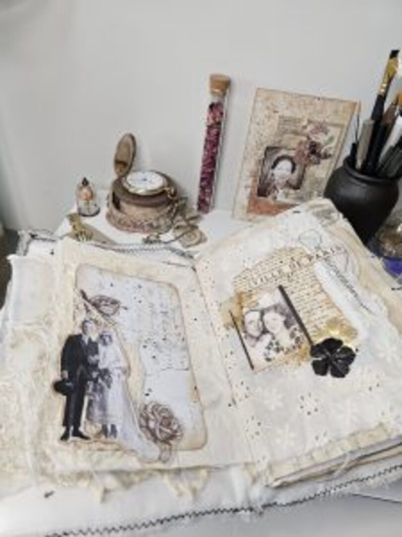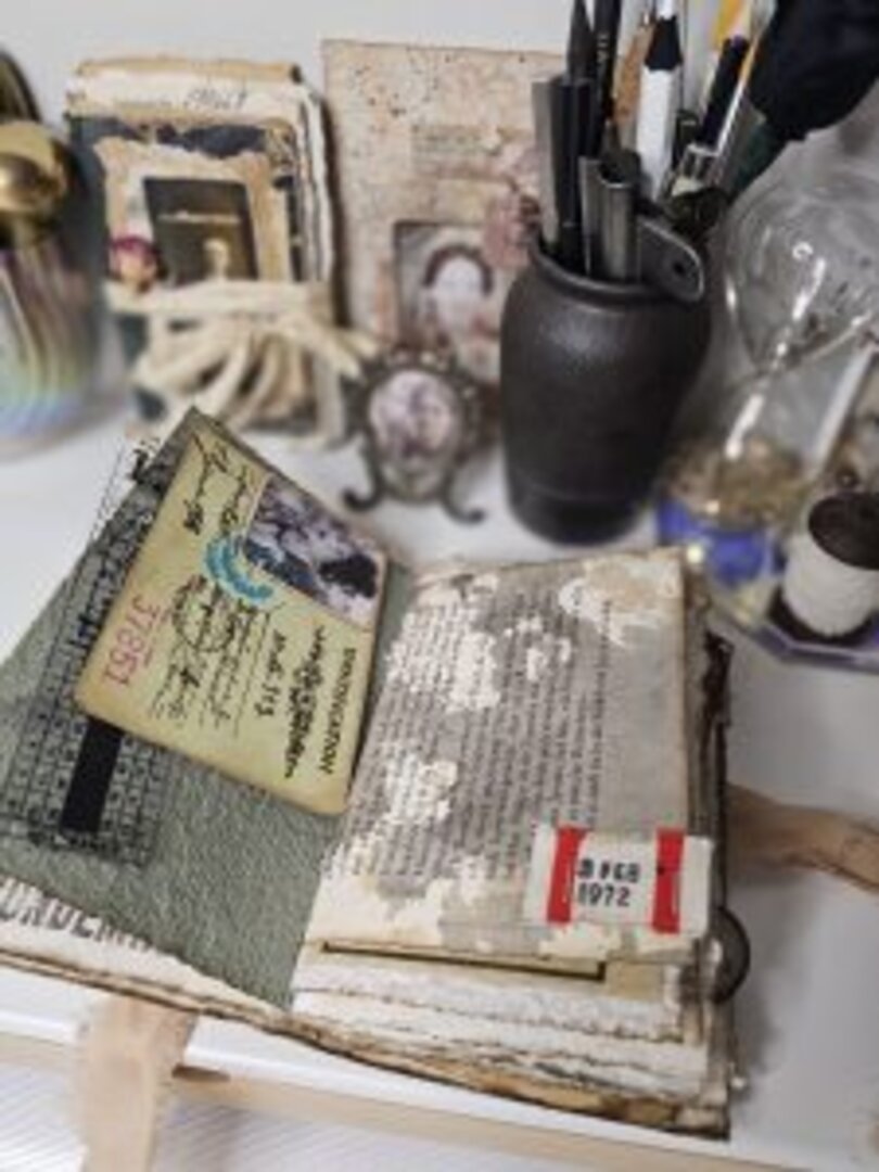 Este junk ha sido el 1º que hice con estética masculina. Tonos verdes, beige, marrones, fotos, mapas, llaves, metal, etiquetas, tickets, cartas….. y un sin fin de detalles, que hacen de este proyecto toda misión…