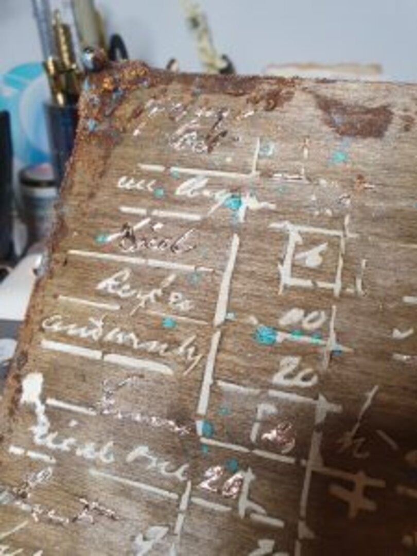 Las flores en textura y las patas le dan un toque perfecto! ahora tocaba usar el óxido que tanto me gusta y los colores asociados al óxido.